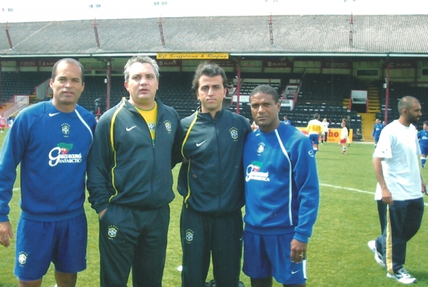 With my Team mates Branco Mazinho and Bruno Costa Exeter Stadium In England